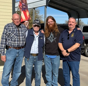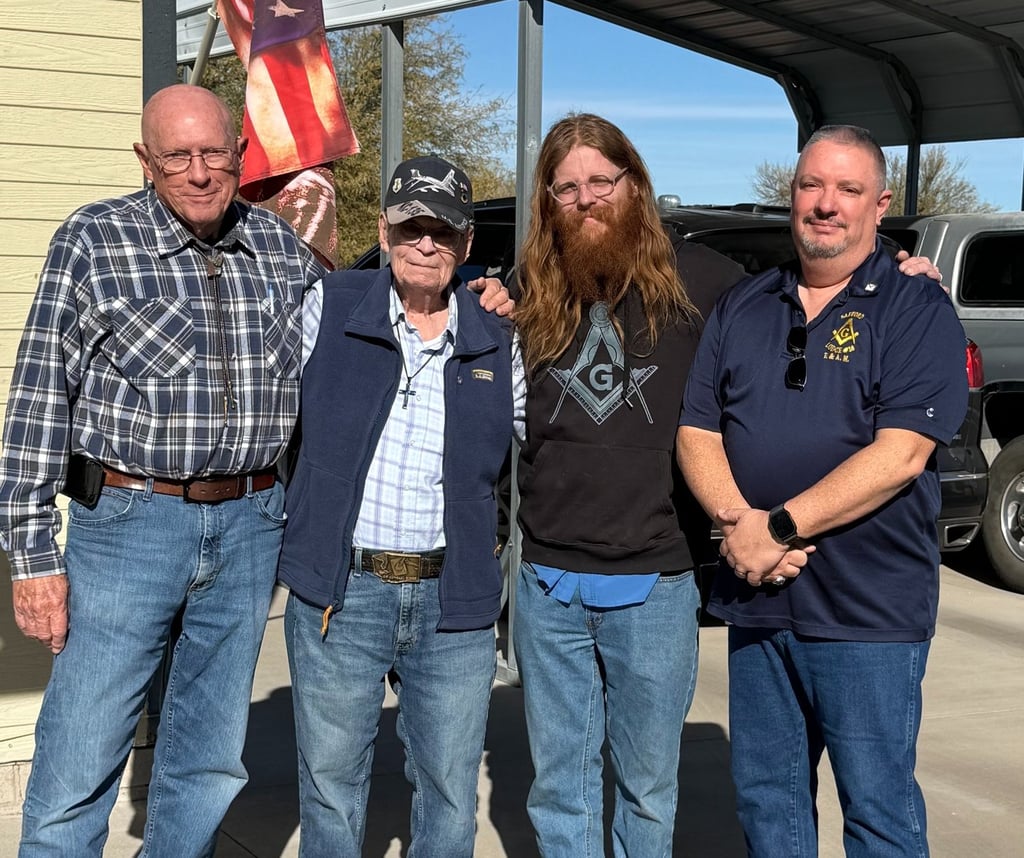 It's a great day to be a Freemason when you get to present a brother with his 60 year service pin and certificate. This doesn't happen very often! Worshipful Brother Phillip Rhea (2nd from left) has been in service to Freemasonry since he was 25. Presenting the award was (left to right) Worshipful Brother John Ratje, Bros. Matthew Allen and Richard Fisher. Presented on December 22, 2025 in Safford, AZ.