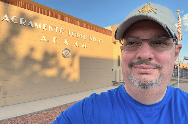 Bro. Richard once again being the Traveling Man that he is went by the Sacramento Lodge #24 AF&AM in Alamogordo, NM. This is a historic lodge because they laid the cornerstone for the first public school there in 1900.